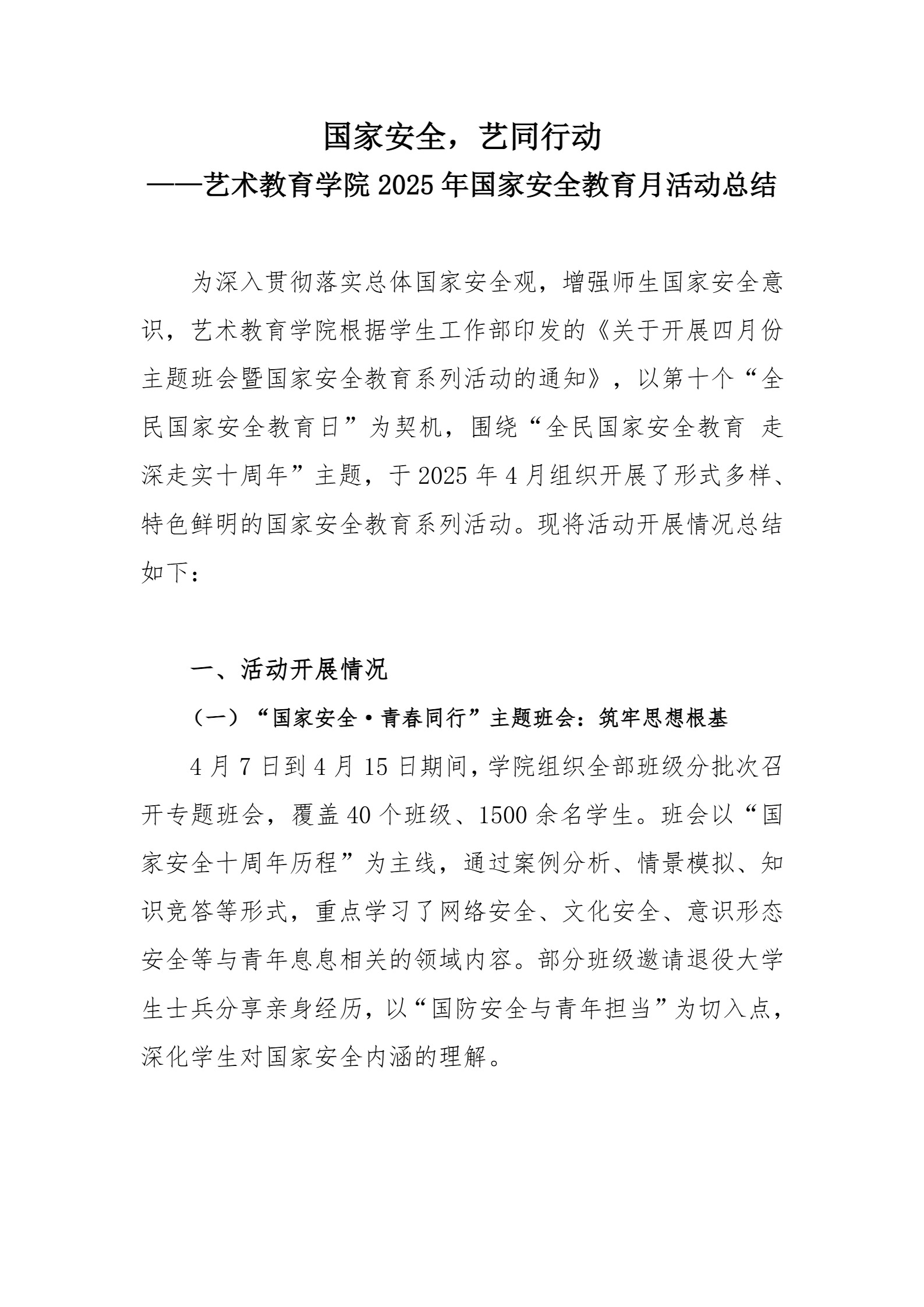 国家安全,艺同行动